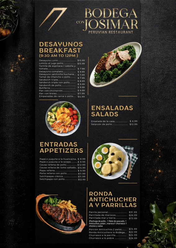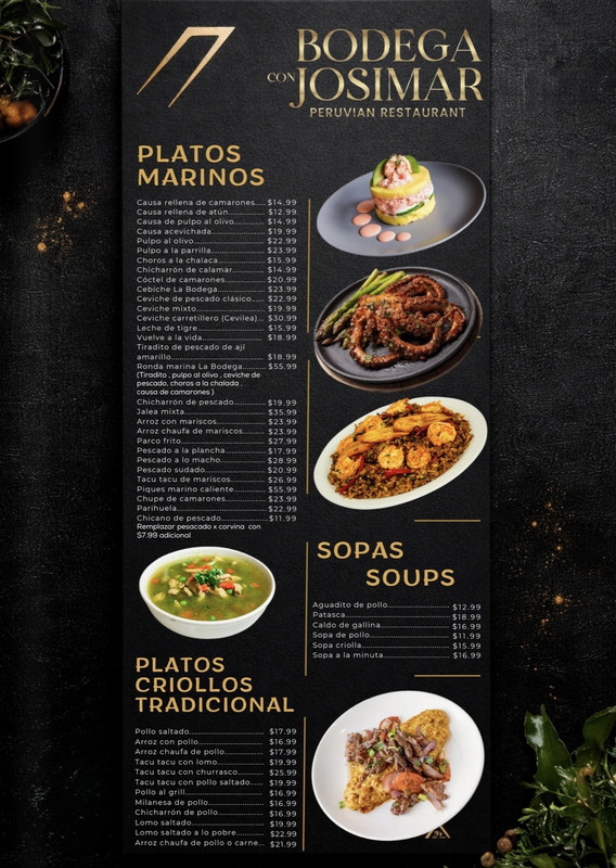 VER MENÚLa Bodega con Josimar ofrece sabores auténticos del Perú, platos preparados al momento y un ambiente moderno perfecto tanto para noches relajadas como para salir a disfrutar. Con buena música, energía vibrante y un concepto lleno de cultura, es el lugar ideal para compartir buena comida, buenos tragos y grandes momentos.